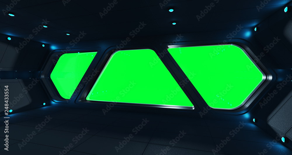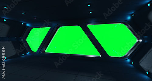 The watermark will not be included on Canvas Print.: Spaceship futuristic interior with window view