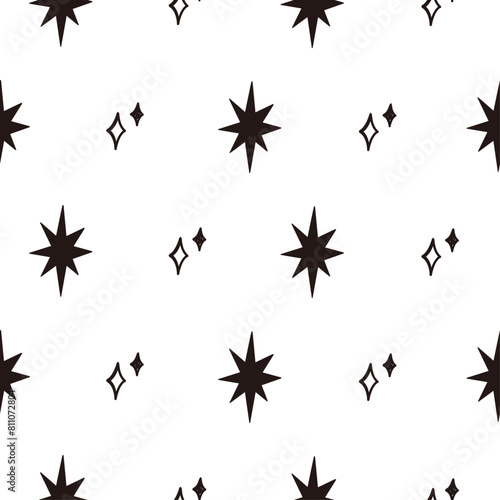 The watermark will not be included on Canvas Print.: Sparkle stars seamless pattern, vector hand drawn background illustration -