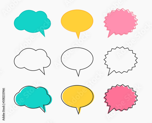 The watermark will not be included on Canvas Print.: Speech bubbles shapes colorful and outline collection -