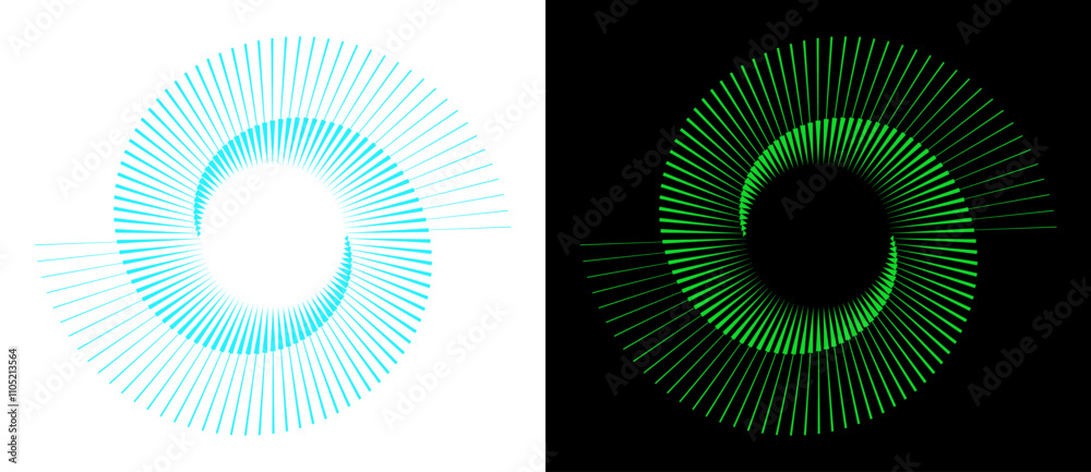 The watermark will not be included on Canvas Print.: Spiral with green and blue colors lines as dynamic abstract vector background or logo or icon - yin a