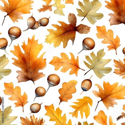 The watermark will not be included on Canvas Print.: Spring abstraction of yellow-orange leaves and various little things - leaves on a white background
