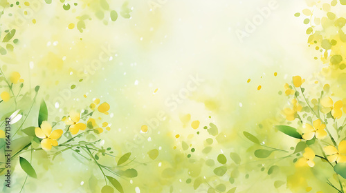 The watermark will not be included on Canvas Print.: Spring background with yellow and green watercolor background