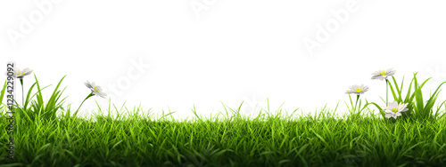The watermark will not be included on Canvas Print.: Spring green grass border png cut out illustration on transparent background with copy space