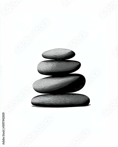 The watermark will not be included on Canvas Print.: Stacked stones symbolize balance and tranquility, set against a minimalist backdrop for a serene aes