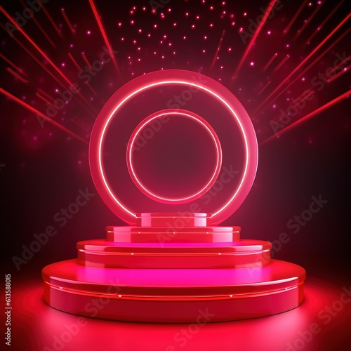 The watermark will not be included on Canvas Print.: Stage with spotlight - stage podium with neon light - generative ai