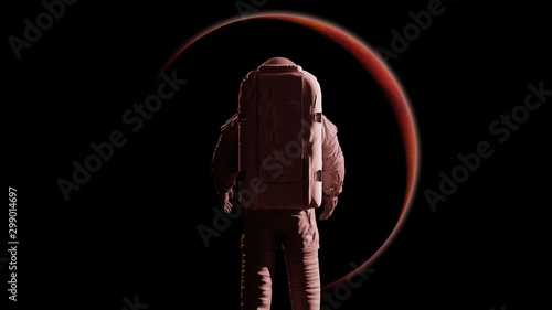 The watermark will not be included on Canvas Print.: Standing astronaut in front of planet mars