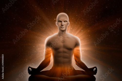 The watermark will not be included on Canvas Print.: Strong man lotus pose with energy rays
