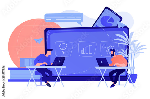 Canvas Prints students with laptops sitting behind interactive board with data. digital, mobile, e-learning, flipp