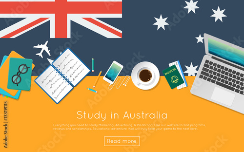 Canvas Prints study in australia concept for your web banner or print materials. top view of a laptop, books and c