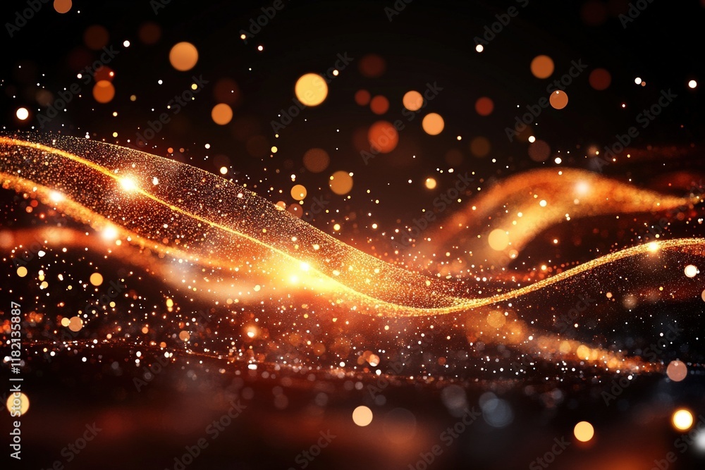 The watermark will not be included on Canvas Print.: Stunning abstract waves of light and sparkles: a glittering display of golden particles on a dark ba