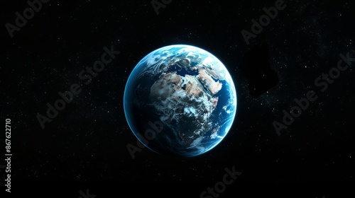 Canvas Print : Stunning view of a blue planet from outer space with glowing atmosphere and starry background, ideal