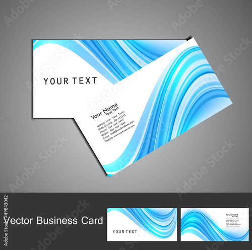 The watermark will not be included on Canvas Print.: Stylish blue colorful wave simple business card template vector