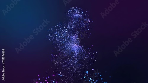 The watermark will not be included on Canvas Print.: Subtle blue and purple sparkling particles slowly ascend and glow against a dark, abstract backgroun