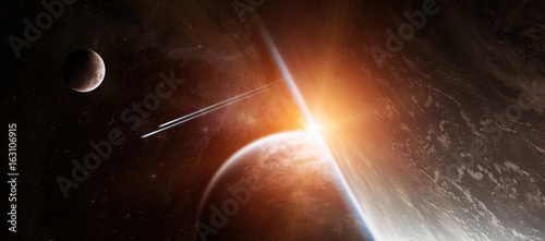 Canvas Prints sunrise over distant planet system in space 3d rendering elements of this image furnished by nasa