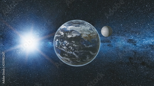 Canvas Prints sunrise view from space on planet earth and moon rotating in space. blue sky milky way with thousand