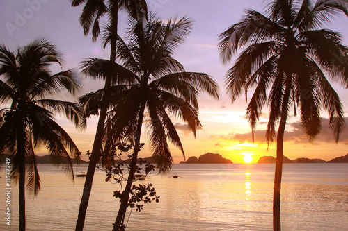 The watermark will not be included on Canvas Print.: Sunset and palm trees