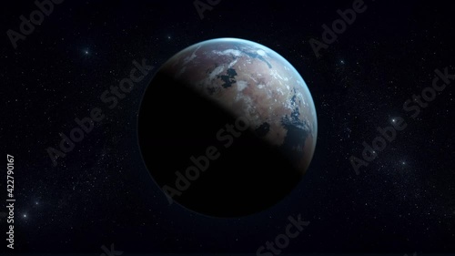 Canvas Print : Sunset in deep space and alien planet - exoplanet kepler rotates around its axis -