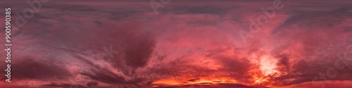The watermark will not be included on Canvas Print.: Sunset sky panorama with red burning clouds - seamless hdr 360 pano in spherical equirectangular form
