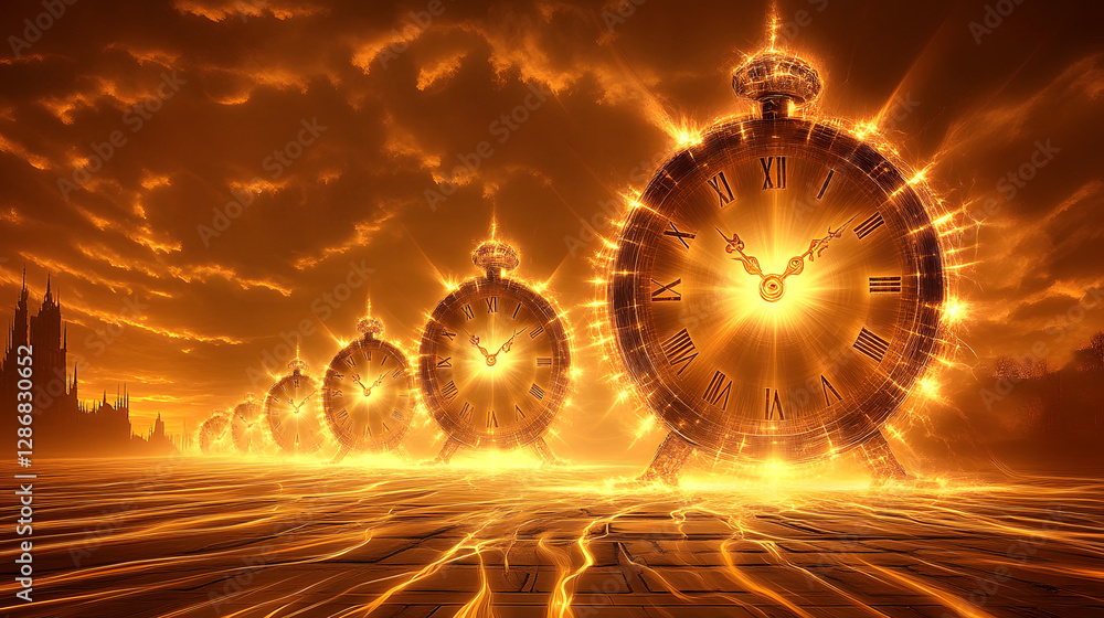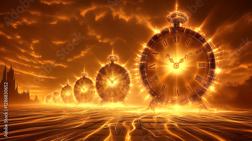 The watermark will not be included on Canvas Print.: Surreal abstraction of time featuring a clock with a clock face surrounded by abstract elements