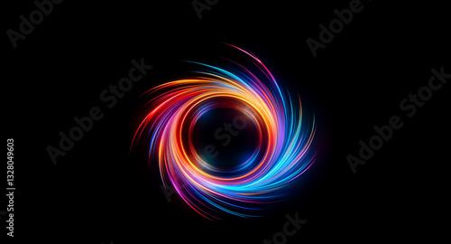 The watermark will not be included on Canvas Print.: Swirling vibrant lights create a circular portal against a stark black backdrop - abstract design wit