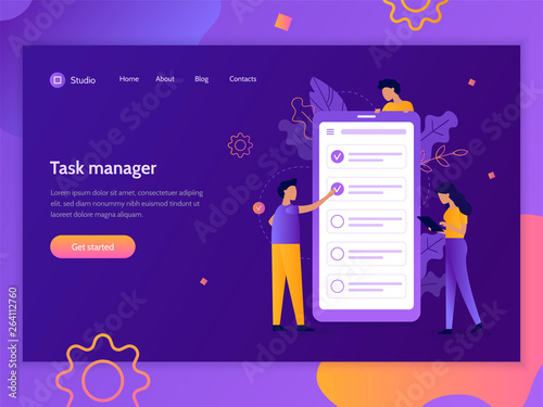 Canvas Print : Task manager - creative landing page design template - flat vector illustration -