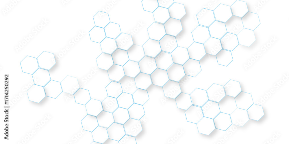 The watermark will not be included on Canvas Print.: Technology abstract background with hexagons mesh, transparent vector background with glowing hexago
