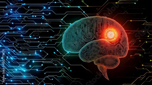 The watermark will not be included on Canvas Print.: Technology brain futuristic cyberspace matrix on a dark and neon background