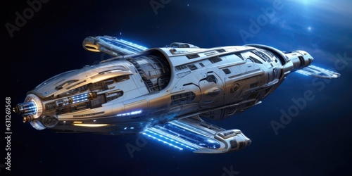 The watermark will not be included on Canvas Print.: The advanced and futuristic exploratory science carrier spaceship - generative ai aig27 -
