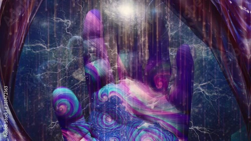 The watermark will not be included on Canvas Print.: The hand of creator - warped space and galaxy - animation