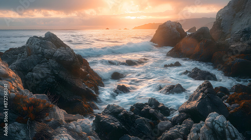 The watermark will not be included on Canvas Print.: The ocean is calm and the sun is setting