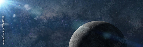 Canvas Prints the planet mercury lit by the sun and in front of the milky way galaxy - Canvas Prints Canvas Prints the planet mercury lit by the sun and in front of the milky way galaxy - Canvas Prints