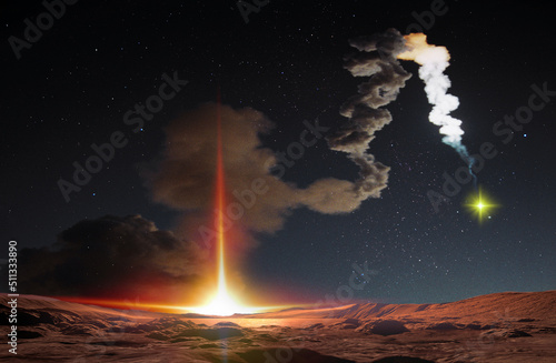 The watermark will not be included on Canvas Print.: The risk of using nuclear weapons has reached its peak since the cold war - missile launch at night -