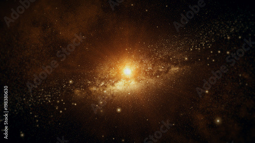The watermark will not be included on Canvas Print.: The solar system with stars and the sun in outer space 3d illustration