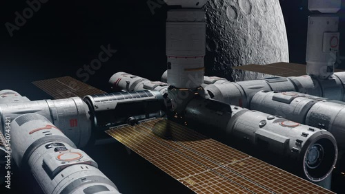 Canvas Prints the space station orbiting the moon. the concept of technology and progress in the space industry an