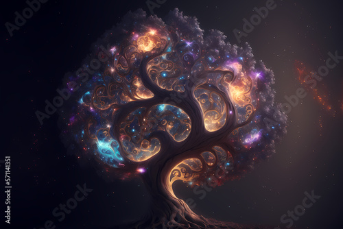 The watermark will not be included on Canvas Print.: The space tree of all life and existence, generative ai
