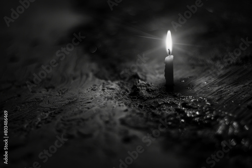 The watermark will not be included on Canvas Print.: The struggle of a small, fragile light surrounded by overwhelming darkness, symbolizing hope or posi