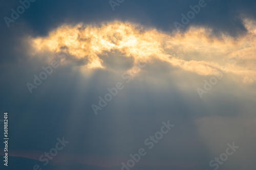 The watermark will not be included on Canvas Print.: The sun's rays breaking through the clouds
