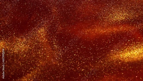 The watermark will not be included on Canvas Print.: The swirling motion of gold particles in the red liquid - golden dust particles floating abstractly i