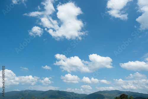 Canvas Prints the white clouds have a strange shape and moutain.the sky and the open space have mountains below.