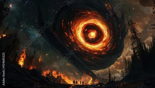 Canvas Print : There is a fiery glow around the portal - dark contours can be seen around it -