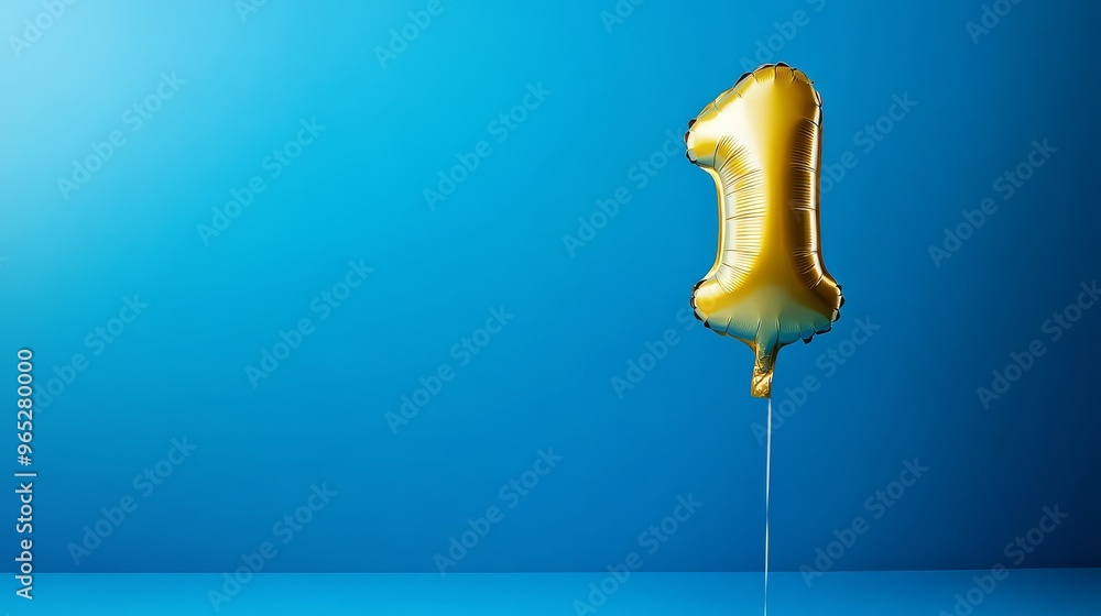 Canvas Prints this bright blue background showcases a gleaming golden balloon with the numeral one, ideal for mark