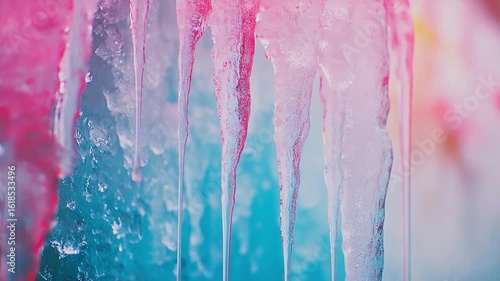 The watermark will not be included on Canvas Print.: This vibrant video captures colorful icicles melting in a captivating display - ideal for creative pr