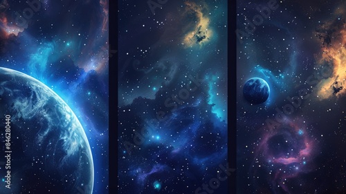 Canvas Prints three panels of a space scene with a planet in the middle - Canvas Prints Canvas Prints three panels of a space scene with a planet in the middle - Canvas Prints