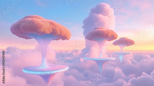 The watermark will not be included on Canvas Print.: Three trees are floating in the sky, with one of them being a giant tree
