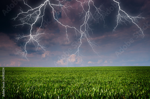 Canvas Prints thunderstorm with lightning in green meadow - Canvas Prints Canvas Prints thunderstorm with lightning in green meadow - Canvas Prints
