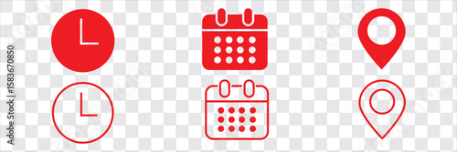 The watermark will not be included on Canvas Print.: Time date address icon set collection vector illustration - event icons vector - location, calendar &