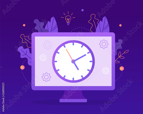 Canvas Prints time to work. the big clock on the computer monitor. time management concept. flat vector illustrati