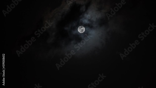 The watermark will not be included on Canvas Print.: Timelapse of the full moon at night moving through the clouds