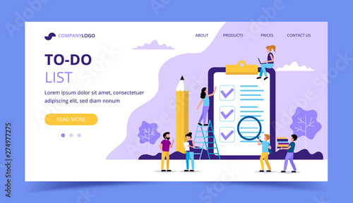 Canvas Prints to do list landing page. big page with check marks and pencil. concept illustration for time and pro