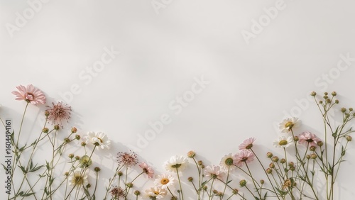 Canvas Prints top view of soft pastel wild blossoms displayed on a white background, highlighted by soft shadowing